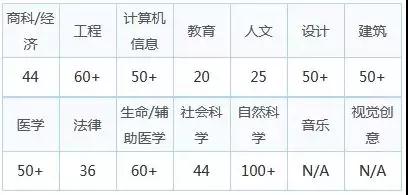 文学院:教育、音乐、戏剧、古典文学、历史、细致艺术、影视制作与传媒研究、语言、经济学等