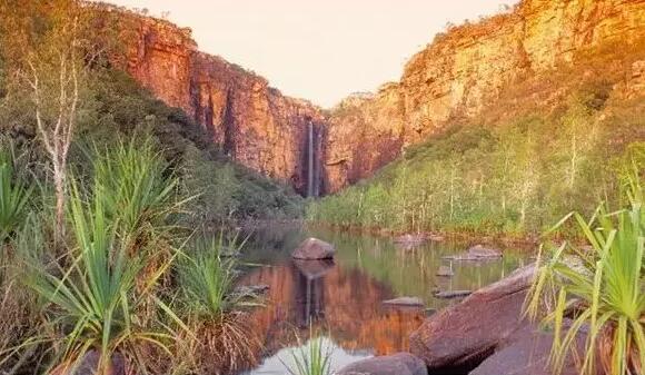 这个宏伟的瀑布位于卡卡杜国家公园,落差高达200米,悬空飞流直下。当激流飞溅阿纳姆地的赭红色岩石之上,眩目的感觉令人惊艳。