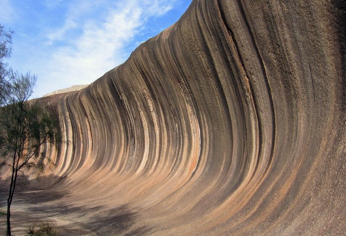 耸立在西澳洲中部沙漠的波浪岩是澳洲知名的观光景点,距离西澳首府珀斯350公里车程5小。波浪岩属于海登岩(Hyden)北部最奇特的一部分,高达15米,长约110米,高低起伏的自然,就像一片席卷而来的大海中的波涛巨浪,相当壮观。每年有大批的欧美观光客慕名而来,为的就是一睹波浪岩奇特壮观的景象。近一年来,从亚洲来的游客中主要以自由行的年青人为主。