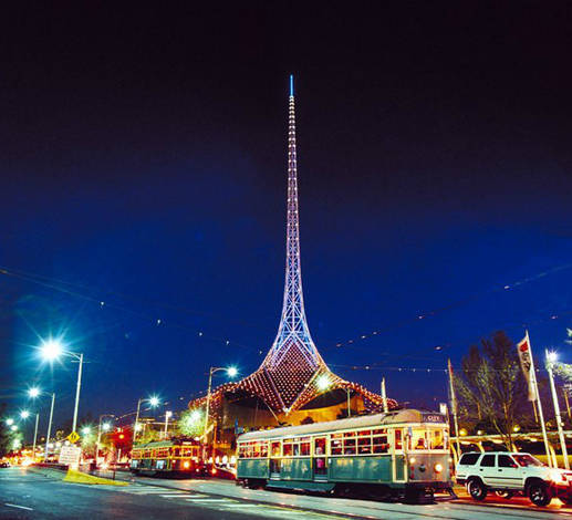 从富林达斯车站越过王妃桥(Princess Bridge),再沿圣基尔达街(St.Kilda St.)步行5分钟,即可见到右侧的新式拱门,拱门内便是维多利亚艺术中心。